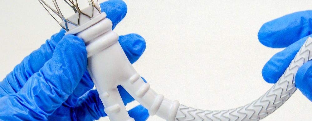 An abdominal aortic aneurysm (AAA) occurs when the portion of the aorta passing through the abdomen bulges because of the weakening of the vessel wall. An aneurysm means the walls of the artery have stretched and become thin causing the vessel to bulge or expand. This weakens the vessel wall and affects its ability to support normal blood flow. If an AAA bursts, it can cause internal bleeding, a serious and potentially life-threatening condition. Endovascular Aneurysm Repair (EVAR) is a minimally invasive procedure that accesses the aorta through a small incision in your groin. Thin wires are inserted through the femoral arteries and act as a guide for a catheter. A stent is delivered through the catheter to the site of the aneurysm and expands to reinforce the damaged portion of the aorta. The stent remains in place permanently to bypass the aneurysm.
