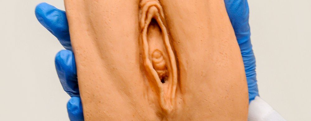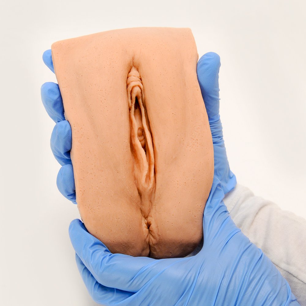 Pulse MDM designed this female anatomy to fit in a traditional medical simulation mannequin. The model was sculpted to be wider than the mannequin cavity so that when it is inserted into the mannequin, all the structures are squished together like real female anatomy.