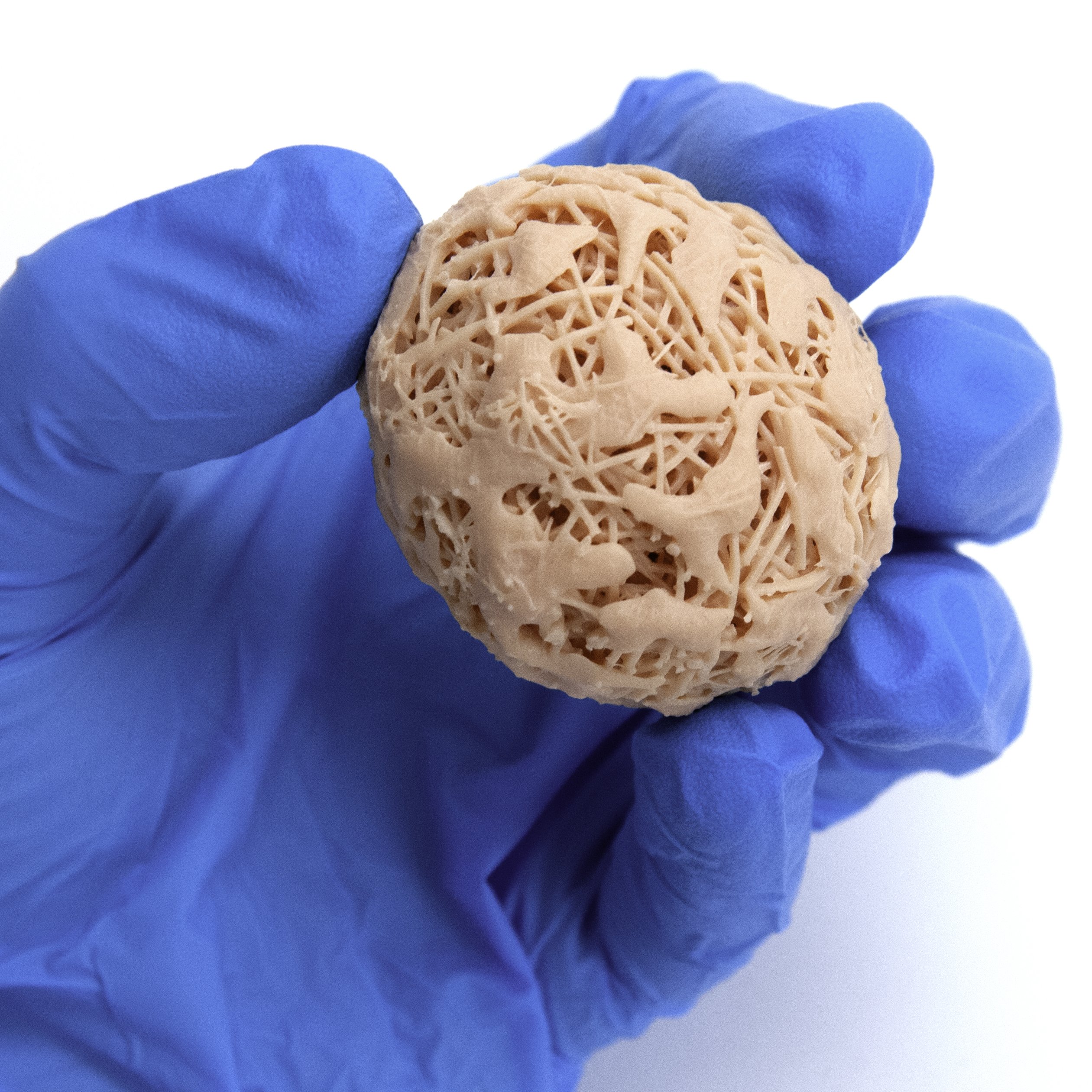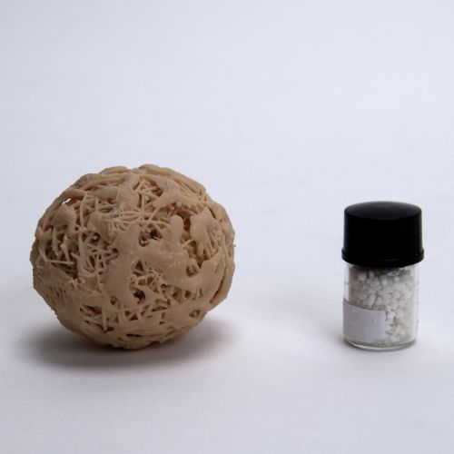 To help Depuy Synthes show physicians the attributes of their product, we planned a greatly upsized replica to show the intricacies of the microscopic details without a microscope. We tested many materials to arrive at the one that would look true-to-life while also making the key details visually apparent. Pulse MDM started the project using client-supplied magnified images of the fiberglass morsel. Our digital sculptor interpreted the image and designed a upsize replica that shows the details. Included are the cavities that provide direct bone cell connectivity. Also, the increased surface area provided by the fibers optimize resorption rates.