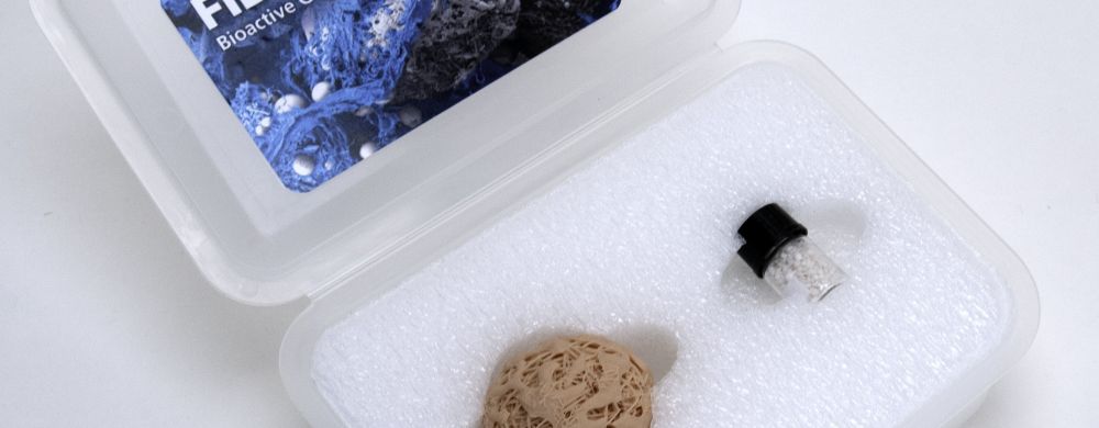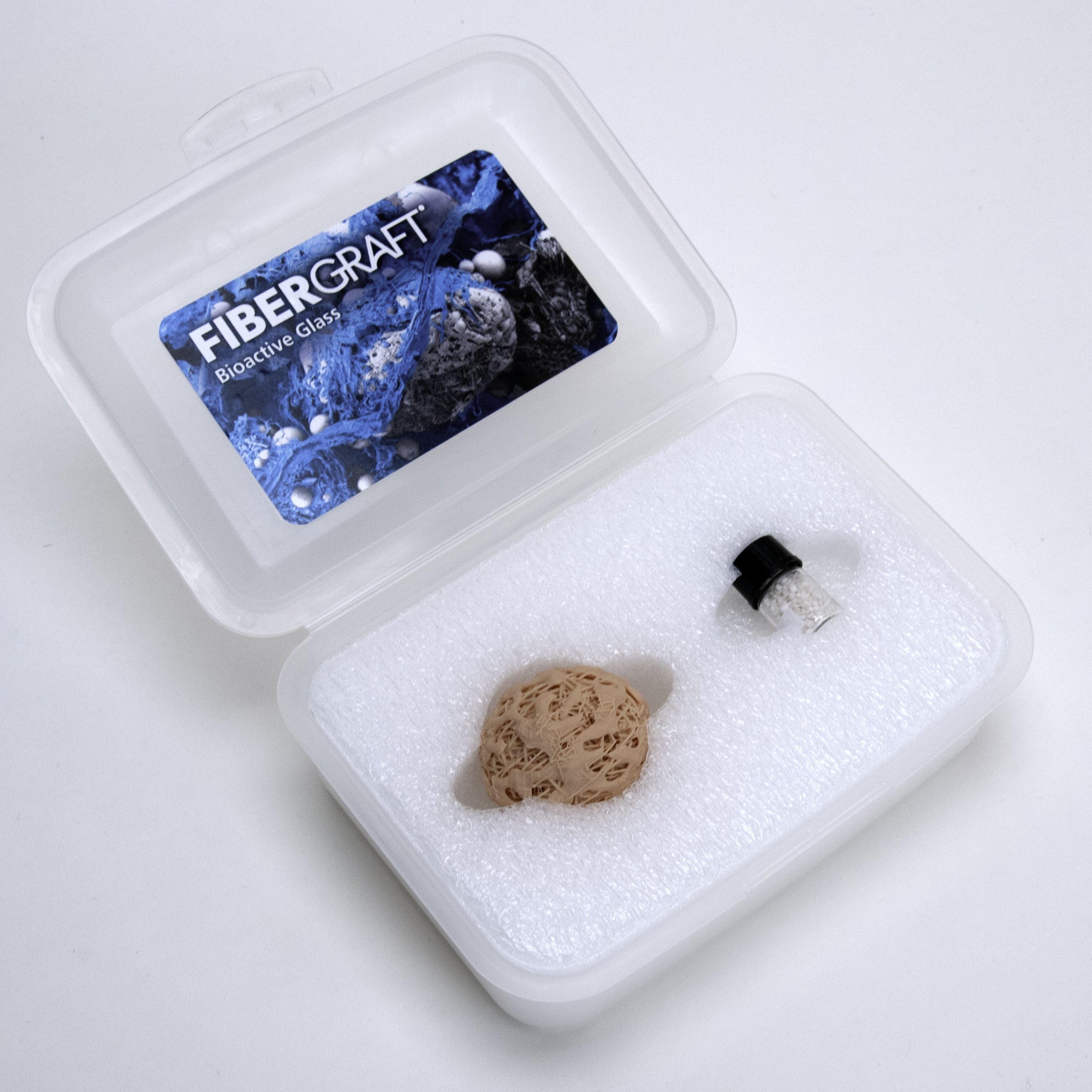 An upsized replica of the bioactive glass fibers would help doctors visualize the method of action. But we all wanted to eliminate any possible confusion as to the actual size of the product.
