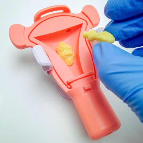 This uterus holds pressure and includes removable and repositionable fibroids. Suction cups are used to secure the model during use. The models were made in volume so every salesperson can take one on the road to show how the Myosure device can remove difficult to reach fibroids at the fundus. The interactive custom model shows the medical device’s versatility and addresses surgeons’ clinical challenges.